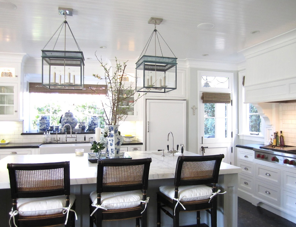 A traditional white kitchen photo…traditional units, traditional countertops, traditional lighting…they have this tradition thing down.